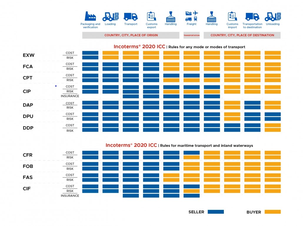 - The buyer bears the import and transport to destination costs. New in the 2020 version of this Incoterm is that the seller must arrange insurance cover in line with what is stipulated in Institute Cargo Clausks (C). In other words, the goods must be covered until their arrival at the destination port. This Incoterm is only used in shipping. It is widely used as it determines the customs value.